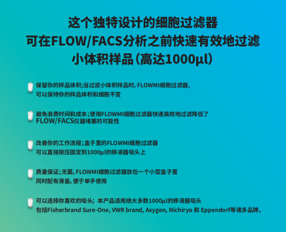 Bel-Art Flowmi 40微米 細(xì)胞過濾器,適用于1000微升移液管(50個/包)