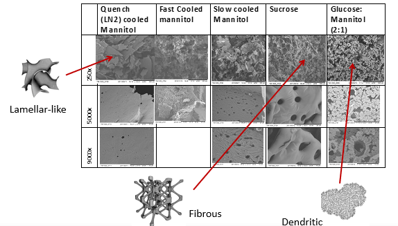 但這也僅僅只能讓我們可以確定不同的凍干條件對于同一個樣品會帶來不同的微觀形態(tài),卻不足以探究不同形態(tài)對于機械強度的影響。