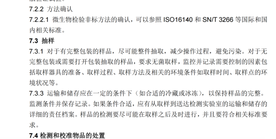 在《檢測和校準實驗室能力認可準則在微生物檢測領域的應用說明》7.3.1中說明“對于無完整包裝或需要打開包裝抽取的樣品,要求無菌取樣,監(jiān)控并記錄需要控制的因素包括取樣器具的準備、取樣過程、取樣方法及相關的環(huán)境條件如取樣時間、取樣點的環(huán)境狀況等?!?/span>
