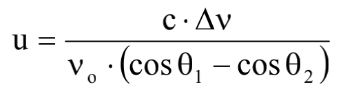 質(zhì)量流量的測定需要測量在測量體積中的氣體流速。速度測量的概念是基于多普勒頻移吸收測量, (如圖1所示)。速度是由激光傳播矢量k和已知角度θ引起的水蒸氣的多普勒位移吸收光譜確定的,氣體流速矢量u。吸收光譜相對于靜態(tài)氣體樣品的吸收波長在波長或頻率上移位,其偏移量與氣體的速度u和u與探測激光束傳播矢量k之間的角度有關(guān)。使用橫跨連通這軸的兩個視線測量,用一個測量路徑與閥芯內(nèi)的第二個路徑進行比較來測量頻移,并由方程式(2)來描述:
