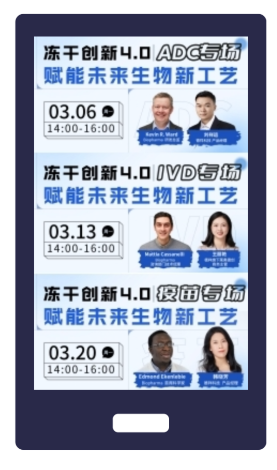 1. 凍干專家坐臺分享,ADC、IVD及疫苗三場專場直播;