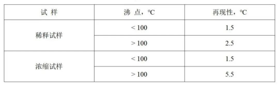 再現性:不同實驗室各自提出的兩個結果之差不應大于表 1所列數值。