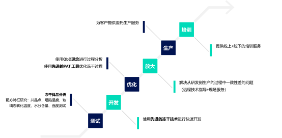 萊奧德創(chuàng)還專注于提供先進(jìn)的凍干設(shè)備應(yīng)用和制劑開發(fā)相關(guān)服務(wù)。提供凍干前后產(chǎn)品性能測(cè)試,配方和工藝開發(fā),凍干工藝優(yōu)化,凍干工藝轉(zhuǎn)移/放大,小批量?jī)龈缮a(chǎn),金字塔凍干系統(tǒng)培訓(xùn)等全方位凍干相關(guān)服務(wù)。