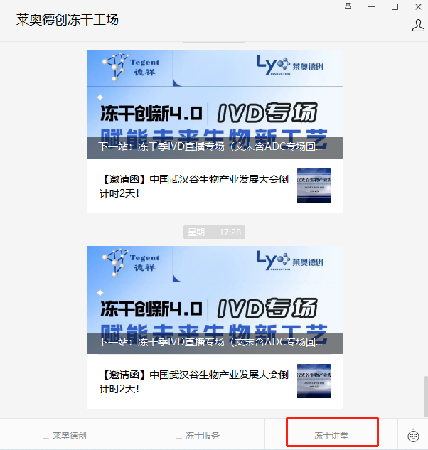 關(guān)注“萊奧德創(chuàng)凍干工場(chǎng)”官方公眾號(hào),獲取凍干講堂線上培訓(xùn)課程。