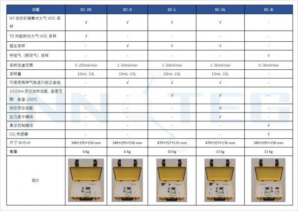 7. 多種型號(hào)可選,SC-XS和SC-S型號(hào)用于常規(guī)采集;SC-L型號(hào)用于常規(guī)采樣、靜態(tài)頂空采樣;SC-XL型號(hào)用于常規(guī)采樣、靜態(tài)/動(dòng)態(tài)頂空采樣、外接氣源壓力控制采樣;SC-B型號(hào)專門(mén)用于呼吸肺泡氣采樣。