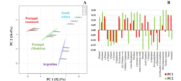 圖片:NTME/GC-MS檸檬(尤里卡品種)果皮的典型特征,來自研究調(diào)查的地區(qū):葡萄牙(大陸和馬德拉島)、阿根廷和南非