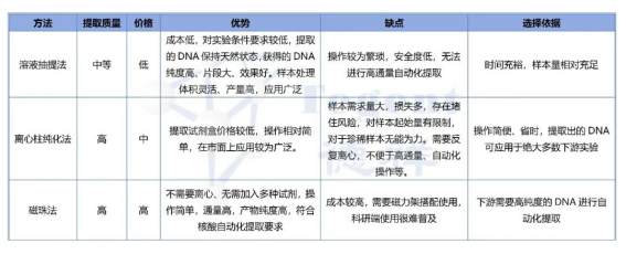 如果對(duì)核酸提取的質(zhì)量要求不高,可以選擇經(jīng)濟(jì)實(shí)惠的溶液法,選擇柱膜法還是磁珠法自動(dòng)化提取,基本上取決于樣本數(shù)量,針對(duì)大批量的樣本,優(yōu)先選擇磁珠法自動(dòng)化提取。如果對(duì)樣本數(shù)量較少,則可以選擇柱膜法,既快速又經(jīng)濟(jì)實(shí)用。對(duì)于Oligo寡核苷酸的純化,實(shí)驗(yàn)要求更高。(可參考往期推文)