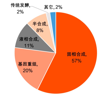 盡管技術(shù)進(jìn)步推動(dòng)了多肽藥物的發(fā)展,但人工合成的復(fù)雜性逐年增加。多肽合成主要采用生物合成法和化學(xué)合成法。