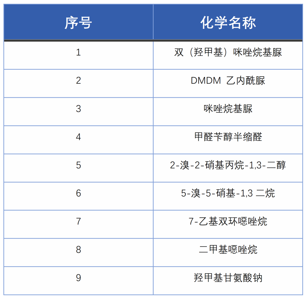 表1:緩慢釋放甲醛的常見防腐劑