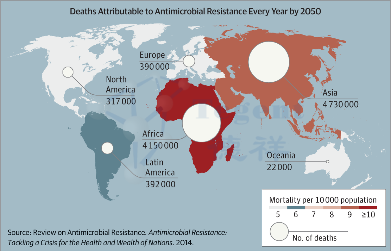 抗菌藥物耐藥性(antimicrobial resistance,AMR)正在成為嚴(yán)峻的全球公共衛(wèi)生危機(jī)。當(dāng)微生物出現(xiàn) AMR,會(huì)導(dǎo)致常規(guī)治療方案失效,感染難以控制,增加疾病和死亡的風(fēng)險(xiǎn),每年有數(shù)十萬(wàn)人因抗生素耐藥性感染而喪生,若不干預(yù),到2050年這一數(shù)字將突破1000萬(wàn)。