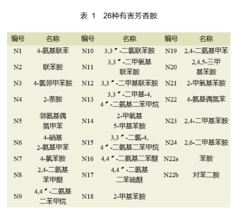 毒性芳香胺(表1)分子量較小,較易穿透細(xì)胞膜進(jìn)入細(xì)胞核,變成活潑的親電陽離子,與DNA中的親核部位相互吸引,發(fā)生交聯(lián)反應(yīng),使正常的遺傳密碼發(fā)生變異,或者芳香胺分子的扁平部位易插入DNA螺旋體的堿基對之間,使正常的DNA遺傳密碼發(fā)生變異,形成癌細(xì)胞。
