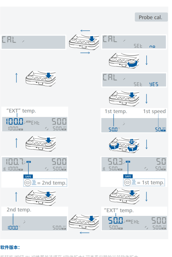 MR系列磁力攪拌器包含的外置溫度傳感器校準(zhǔn)(為減少因公差所致的溫度變化,用戶可使用儀器對溫度傳感器進行校準(zhǔn))。溫度校準(zhǔn)功能,確??蛻艨梢詢?nèi)部校準(zhǔn)。確保符合良好實驗室的規(guī)范。