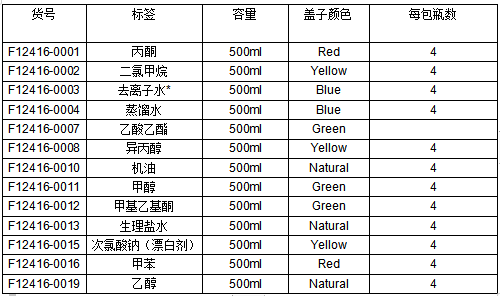 ? 半透明LDPE瓶;次氯酸鈉為白色LDPE,用于230-450nm之間的光保護(hù);甲苯為紅色LDPE瓶